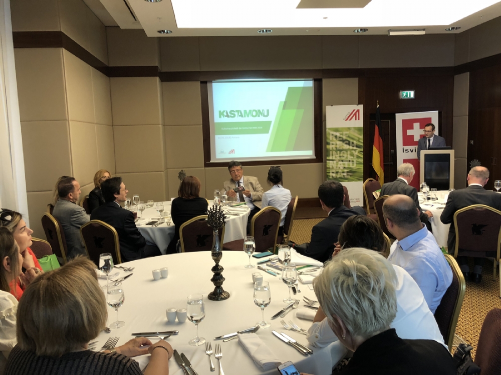 Açýlýþ kýsmýnda söz alan Avusturya Ankara Büyükelçiliði Ticari Ataþesi Dr. Christian MAIER, her ay geleneksel olarak düzenledikleri iþadamlarý buluþmalarýný Alman ve Ýsviçreli mevkidaþlarý ile aldýklarý karar ile bugünden itibaren ilk kez 3 ülke ortak etkinliði olarak düzenlediklerini vurgulayarak baþladýðý konuþmasýnda; bu yýlki toplantýda 2018 Yýlý Türk Dünyasý Kültür Baþkenti Kastamonu’yu gündemlerine aldýklarýný belirterek, “Geçtiðimiz Mart ayýnda 2018 Yýlý Türk Dünyasý Kültür Baþkenti Kastamonu açýlýþ etkinlikleri dolayýsý ile Kastamonu’daydýk. Çok güzel bir organizasyon oldu, baþarýlý etkinlikten dolayý emeði geçen herkesi tebrik ediyorum. Bu kapsamda yýl boyunca gerçekleþtirilecek etkinlikler vesilesi ile herkesi bu þehri görmeye davet ediyorum” dedi.