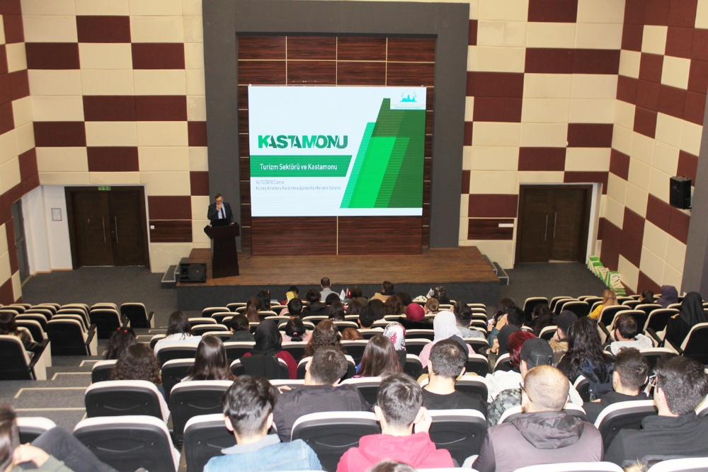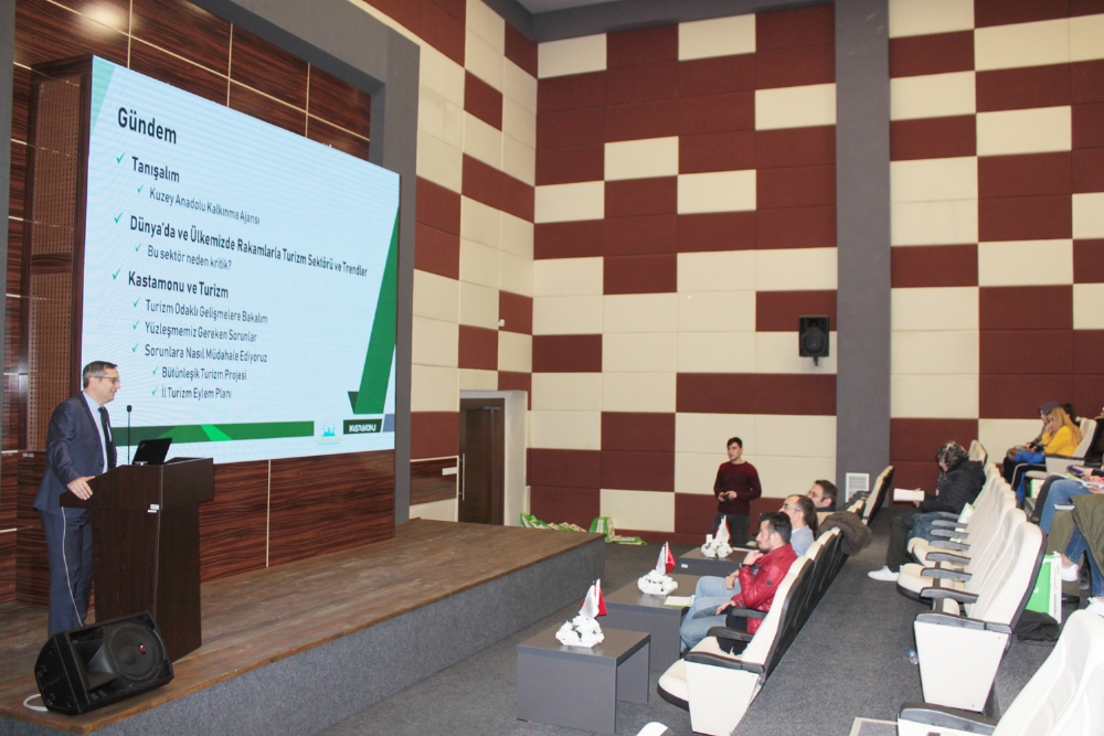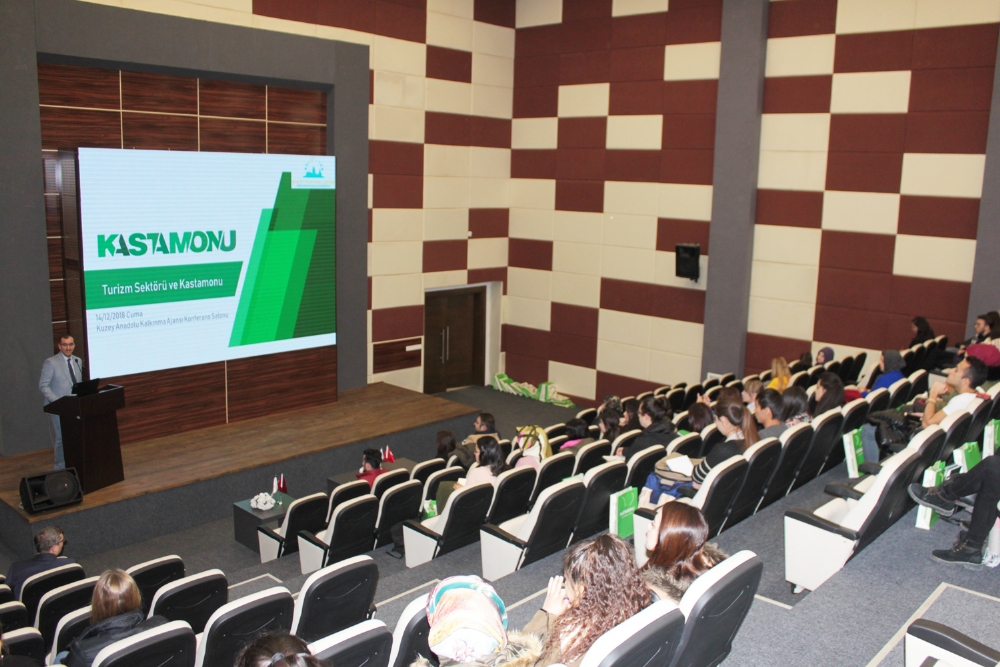 Uygulamalý turizm dersleri kapsamýnda Kastamonu Üniversitesi Turizm Fakültesi Dr. Öðretim Üyesi Hüseyin PAMUKÇU baþkanlýðýnda Ajansýmýzý ziyaret eden birinci sýnýf öðrencileri, Ajansýn 2015 yýlýnda uygulamaya koyduðu Bütünleþik Turizm Projesi’ni yakýndan inceleme ve detaylý bilgi edinme imkâný elde etti. Ajansýmýz Konferans Salonu’nda gerçekleþtirilen etkinlikte öðrencilere Planlama, Programlama ve Stratejik Araþtýrmalar Birimi Baþkaný Serkan DOÐRU önce Ajansýn kuruluþ amacý, Kastamonu, Çankýrý ve Sinop’ta gerçekleþtirmekte olduðu faaliyetleri hakkýnda genel bilgiler sundu. Ardýndan dünya genelinde turizm trenleri, turizm istatistikleri ve Ajans tarafýndan üç ilde uygulanmakta olan “Bütünleþik Turizm Projesi” hakkýnda detaylý bilgiler paylaþtý.
