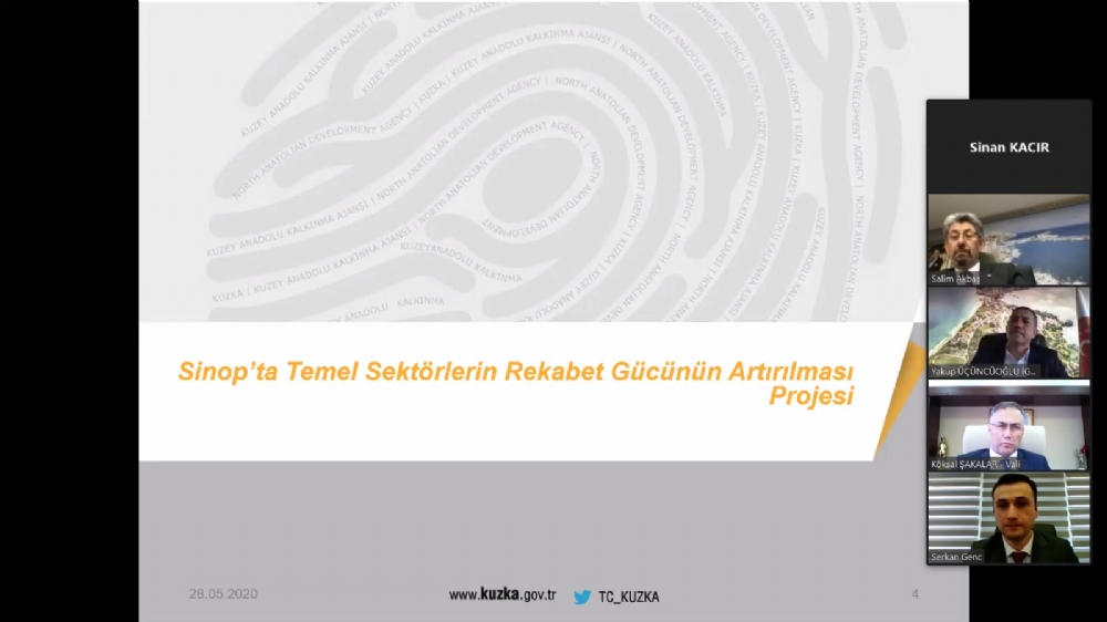 Ajansýn faaliyetlerine iliþkin Genel Sekreterimiz Dr. Serkan GENÇ’in ardýndan, Ajansýmýz uzmanlarýnca “Sinop’taki Temel Sektörlerin Rekabetçiliðinin Artýrýlmasý” Projesi ve COVID-19 salgýný kapsamýnda turizm sektöründe faaliyet gösteren tesislerde uygulanacak “Saðlýklý Turizm Sertifikasyon Programý” na iliþkin bilgilendirme sunumlarý gerçekleþtirildi.